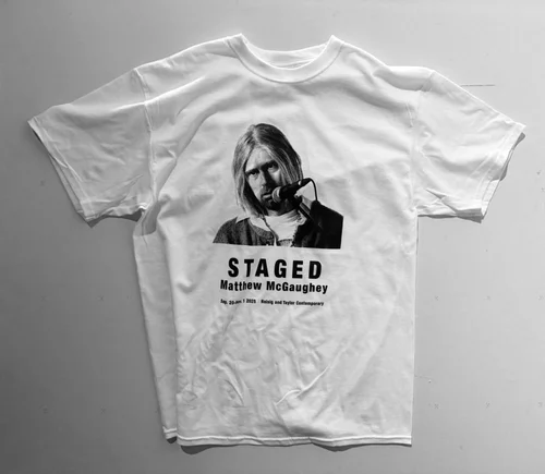 Staged is a materially expansive work which began as exhibition that transformed the gallery into a space of layered reenactment and structural critique, using the figure of Kurt Cobain as a lens to explore how capitalism absorbs and commodifies resistance and dissent. While Cobain may be the entry point, the exhibition is not merely about him as a musical icon. Instead, it's about the broader ways in which our cultural and economic systems turn acts of defiance into marketable surfaces. Through a combination of video, sculpture, and installation, "Staged” interrogates how normativity and capitalism co-opts acts of opposition , leaving us in a loop of reenactment that feels both inescapable and eerily relevant to our current moment.